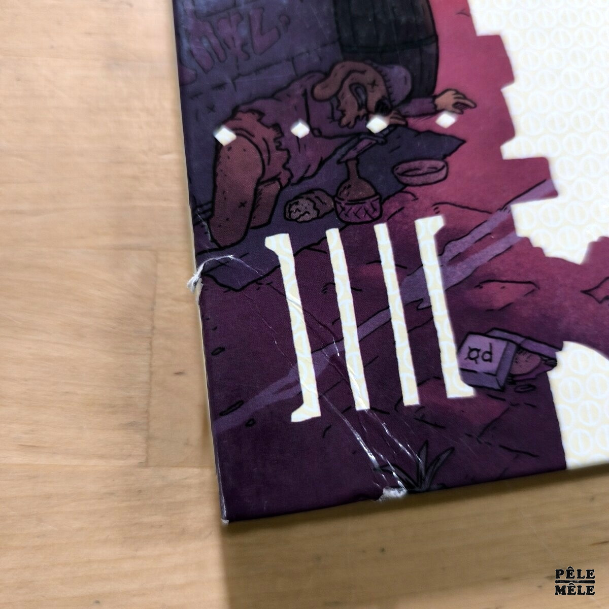Coup porté au coin inférieur gauche du quatrième plat